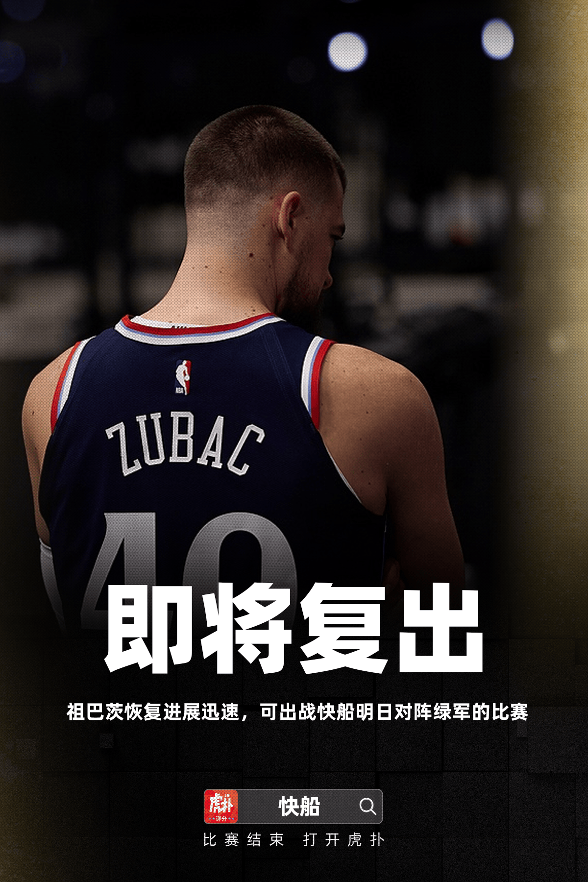 祖巴茨是速可賽在兩周前遭遇二級(jí)腳踝扭傷,但他的快船康復(fù)進(jìn)展迅速,積極推進(jìn)恢復(fù)流程,明日因此得以提前回歸賽場(chǎng)。對(duì)陣的比