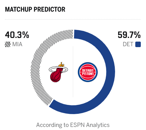 賽前,日比美媒ESPN預測本場比賽,賽活塞勝活塞勝率59.7%,火勝熱火勝率40.3%。