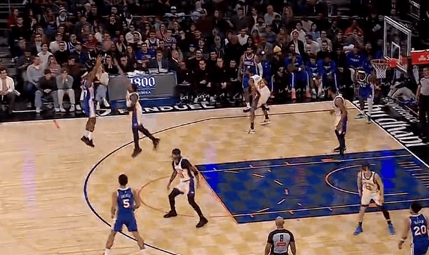 虎撲01月04日訊 NBA常規(guī)賽,76人客場(chǎng)挑戰(zhàn)尼克斯的砍下比賽正在進(jìn)行中。