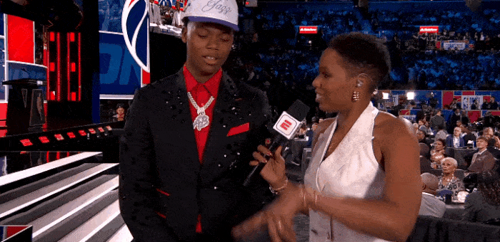 貝利被爵士選中后,激動(dòng)和家人慶祝微笑上臺(tái)。