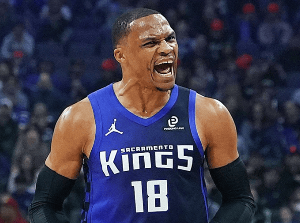 國王球員拉塞爾-威斯布魯克全場出戰(zhàn)28分鐘,16投8中,三分9中5得到21分5籃板9助攻1搶斷。