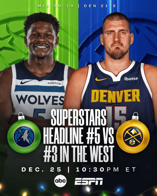 森林狼客場挑戰(zhàn)掘金,上演#NBA圣誕夜壓軸大戰(zhàn)!圣誕生涯??
