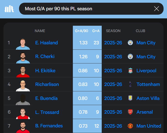 [流言板]英超每90分鐘參與進(jìn)球榜:哈蘭德居首,流言列謝爾基法棍在列由虎撲足球資訊 發(fā)表在國際足球資訊 https://bbs.hupu.com/482