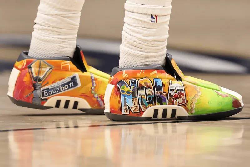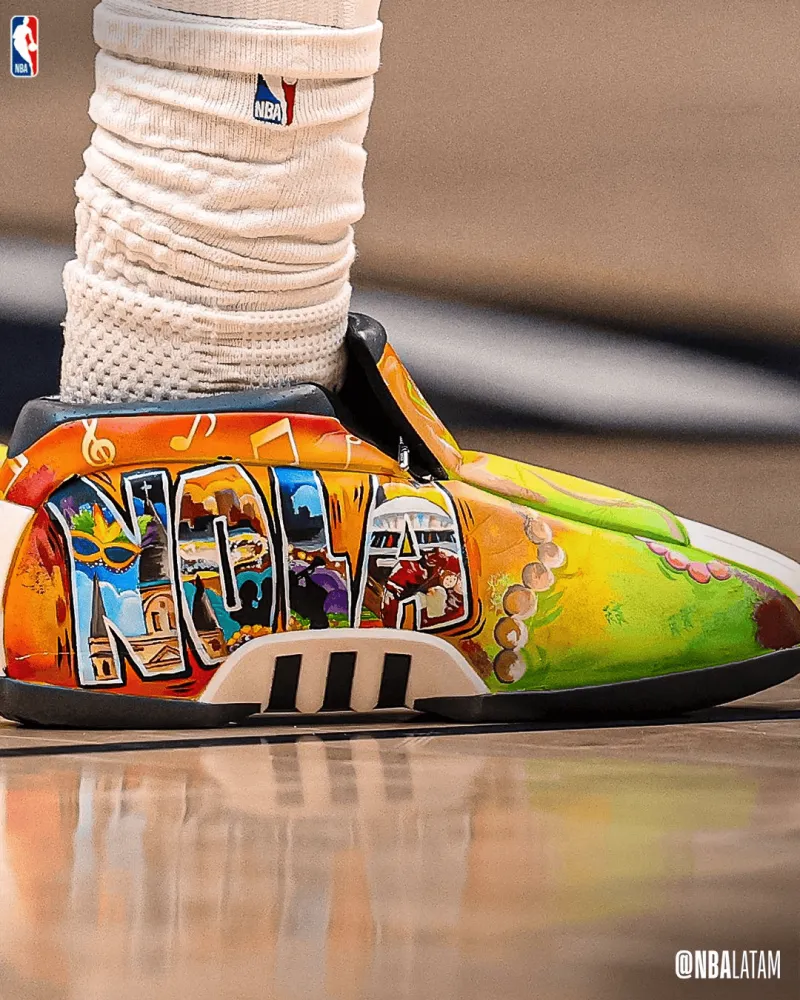美媒B/R Kicks曬照:杰里邁亞-費爾斯今日上腳新奧爾良主題的阿迪阿迪達(dá)斯Crazy 2球鞋。