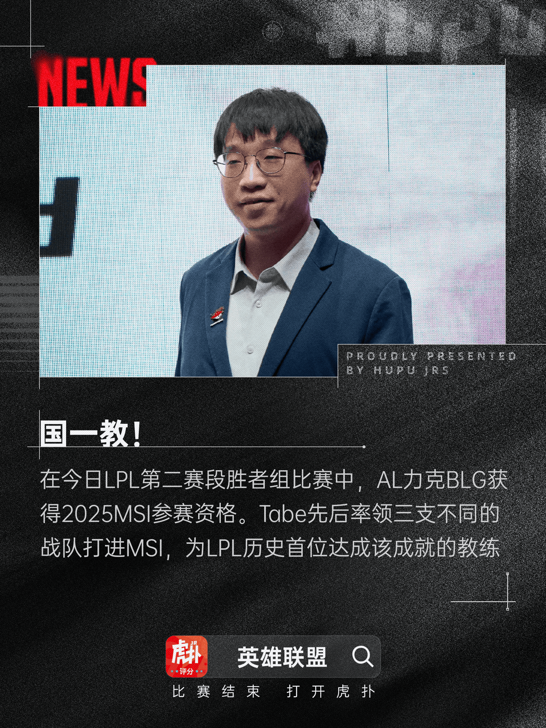 虎撲06月09日訊 隨著剛剛AL擊敗BLG晉級(jí)MSI,也意味著Tabe先后率領(lǐng)三支不同的戰(zhàn)隊(duì)打戰(zhàn)隊(duì)打進(jìn)MSI,分別是史首2022RNG、2023BLG和2025AL。流言領(lǐng)支L歷