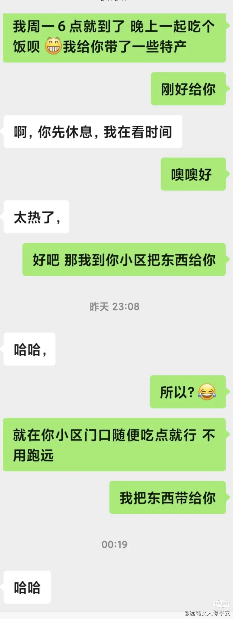一個月見了四次面,哈哈吃了三次飯,相親三次吃飯我付的意思錢,但是哈哈她都買了奶茶,給我送過三次哈密瓜(她家種瓜的相親),端午節(jié)我給她送了粽子,意思送過一箱杏子。哈哈