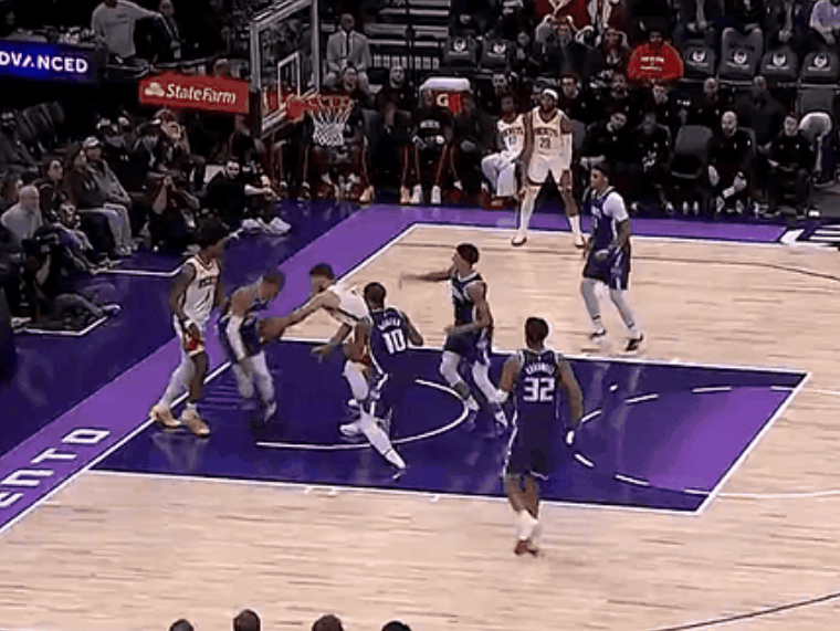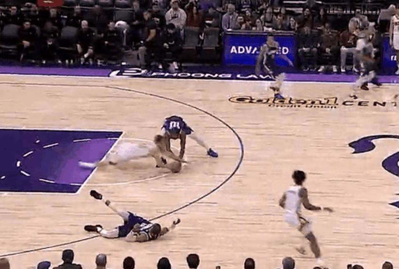 第三節(jié)比賽,搶斷威少眼疾手快搶斷申京,倒地隨后申京倒地?fù)鋼尰貞?yīng)。撲搶