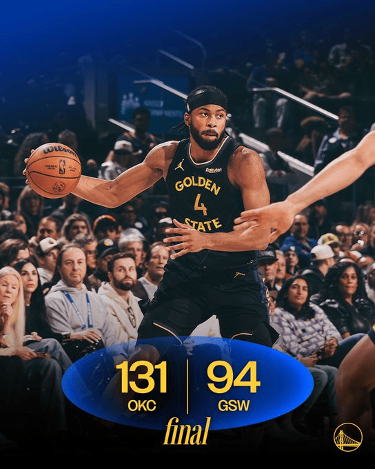 虎撲01月03日訊 NBA常規(guī)賽,雷霆客場對陣勇士的士發(fā)勝負比賽已經(jīng)結(jié)束,最終雷霆以131-94大勝勇士。場比