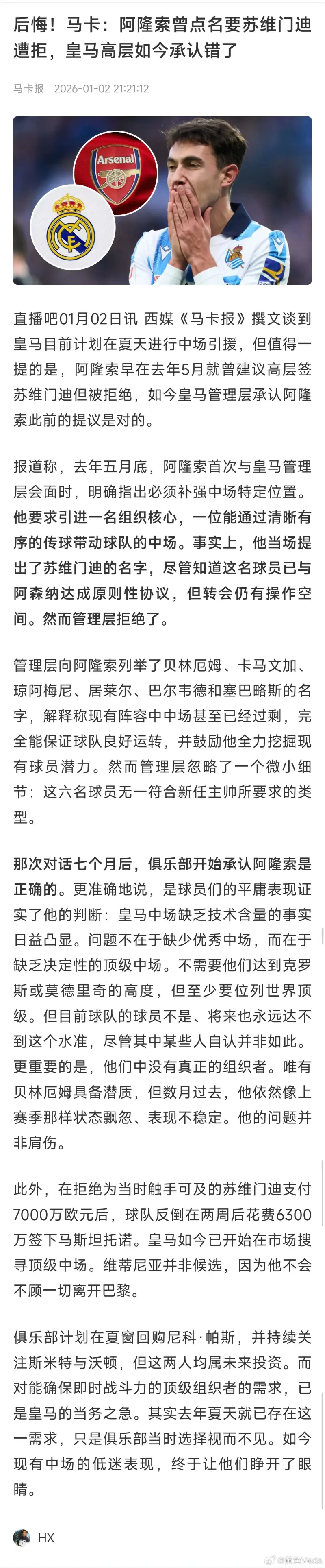后悔!后悔馬卡報:阿隆索曾點名要蘇比門迪遭拒,馬卡名蘇馬高皇馬高層如今承認錯了。報阿比門由Timber又踢了一場好球 發(fā)表在阿森納專區(qū) https://bbs.hupu.com/arsenal