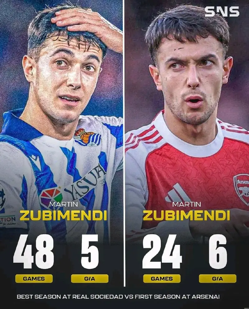 ?蘇比門迪在皇家社會(huì)的最佳賽季與加盟阿森納后的首個(gè)賽季表現(xiàn)對(duì)比,主要體現(xiàn)在進(jìn)球效率、適應(yīng)過(guò)程及團(tuán)隊(duì)角色變化上。? 在皇家社會(huì)期間,其最佳賽季為2021/22、2022/23或2023/24賽季,單賽季直接參與進(jìn)球數(shù)最高為5球(包括進(jìn)球和助攻)?;而加盟阿森納后的2025/26賽季,他在半個(gè)賽季內(nèi)已直接參與6球,創(chuàng)下個(gè)人單賽季新高,且包括關(guān)鍵進(jìn)球如對(duì)陣諾丁漢森林的梅開(kāi)二度和英超月度最佳進(jìn)球?。