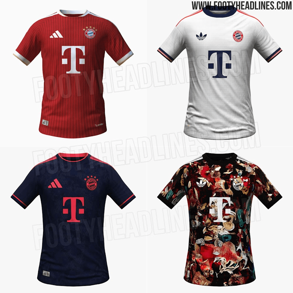 虎撲01月02日訊 足球裝備網(wǎng)站footy headlines發(fā)布了拜仁慕尼黑2026-27賽季四款球衣的諜照。