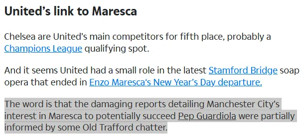 據(jù)說(shuō),那些關(guān)于曼城有意引進(jìn)馬雷斯卡接替瓜迪奧拉的負(fù)面報(bào)道,部分內(nèi)容來(lái)源于老特拉福德內(nèi)部的一些傳聞。