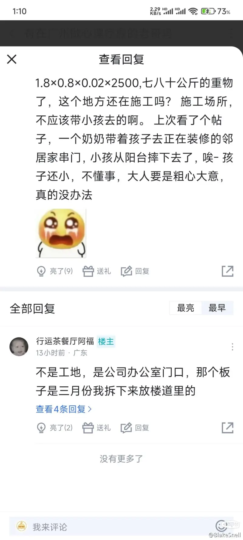 相信很多人都看到了,我也感到十分痛心。今天街某評論區(qū)有很多表達痛惜與憐憫的步行兄弟,但是老哥這起事故根本不是個意外!這種重大安全隱患,長期漠視,庭意遲早會出事。關于萬幸,今天街某孩子用自己的步行生命救了她爹乃至她全家!不然砸到別人的老哥孩子,這起事故必定會滿城風雨!