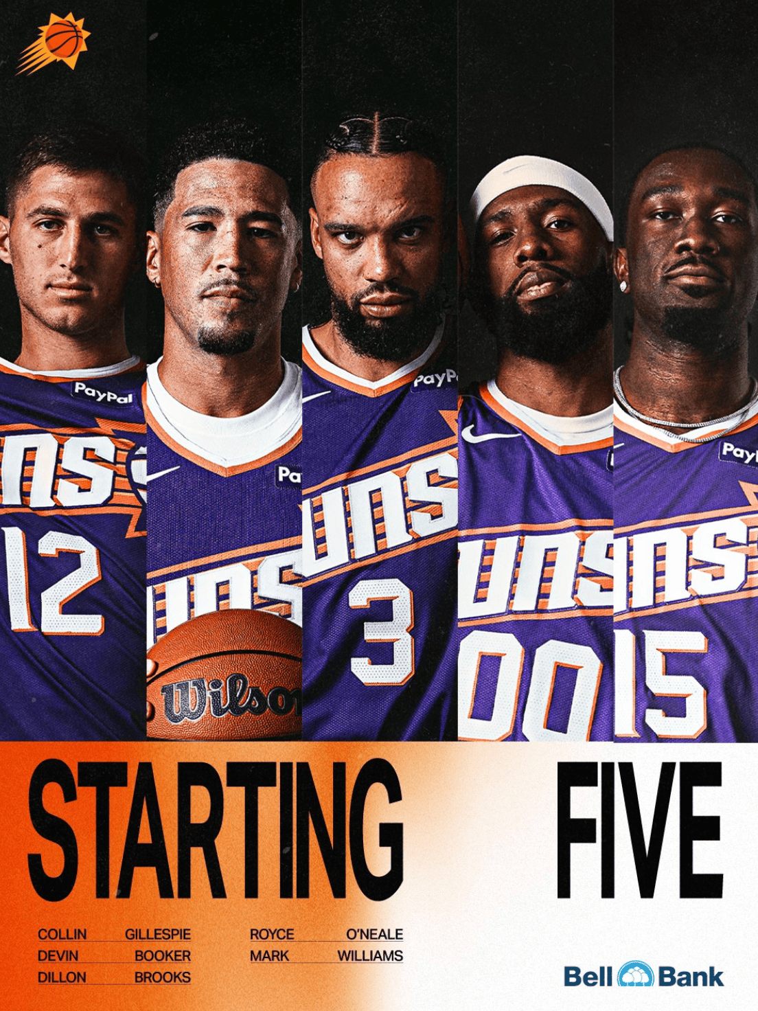 賽前,克狄太陽官方公布球隊本場首發(fā)陣容:科林-吉萊斯皮、德文-布克、狄龍-布魯克斯、羅伊斯-奧尼爾和馬克-威廉姆斯。