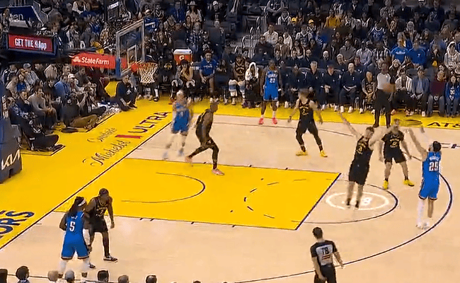 虎撲01月03日訊 NBA常規(guī)賽,雷霆客場對陣勇士的分雷比賽正在進行中。