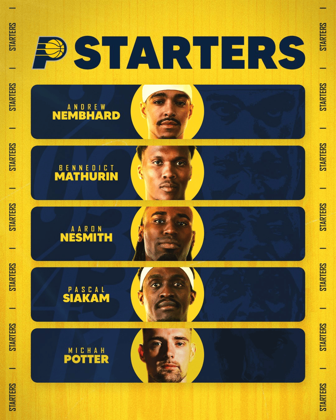 步行者首發(fā):內(nèi)姆布哈德、首發(fā)瑟林馬瑟林、內(nèi)姆內(nèi)史內(nèi)史密斯、德馬西卡、波特