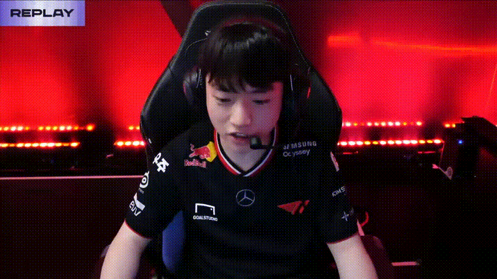 虎撲06月15日訊 T1對(duì)陣HLE第三局,Keria看到開場(chǎng)打出8/0后開心大笑鼓掌