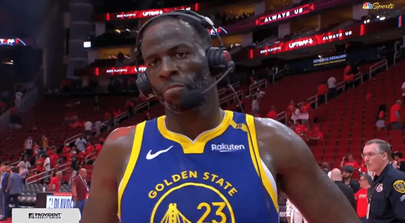 賽后,格林在場(chǎng)邊接受采訪,記者:”比賽中庫(kù)里有很多不可思議的三分,你跟他一起打了這么多年,你看到是什么感受?!?/p>