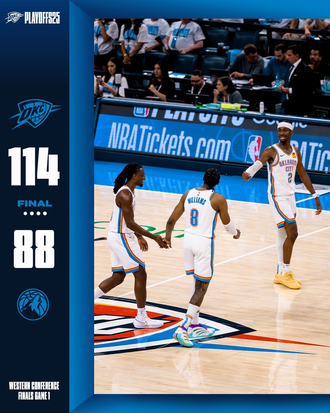 虎撲05月21日訊 雷霆以114-88擊敗森林狼,大比分1-0領(lǐng)先。門(mén)紅