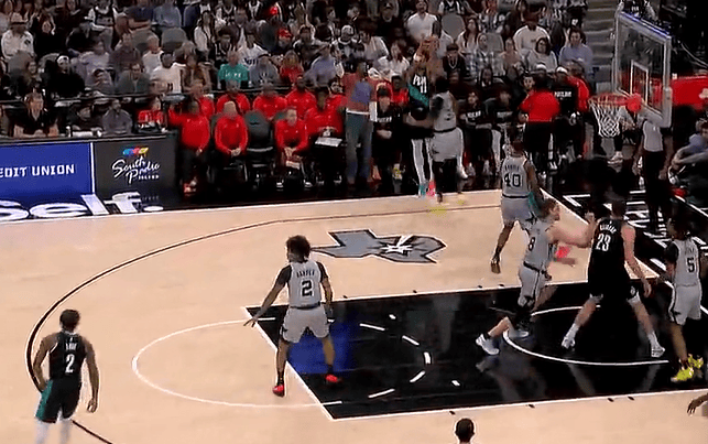 卡馬拉底角接球三分強投命中,開拓者領先馬刺10分