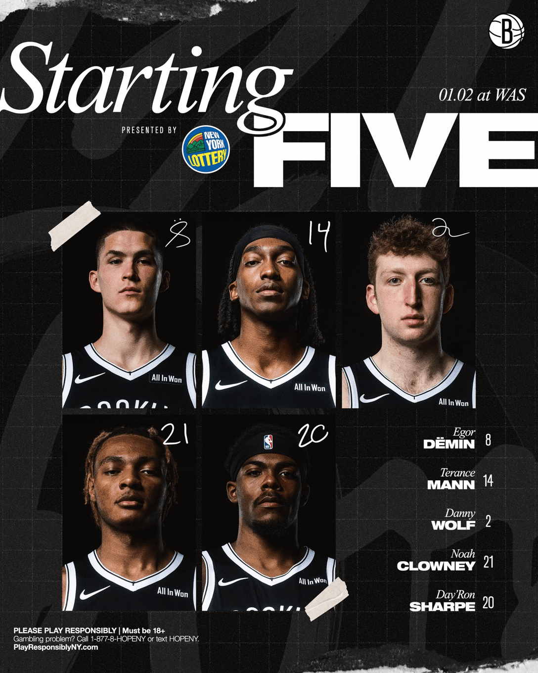 籃網今日首發(fā):杰明、流言倫特倫斯-曼、板籃沃爾夫、網今克勞尼、夏普