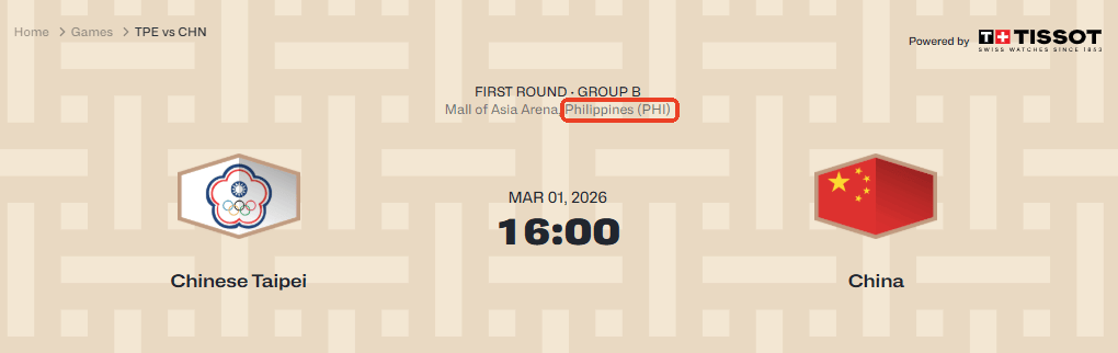 虎撲12月22日訊 據(jù)FIBA官網(wǎng)顯示,中國(guó)男籃世預(yù)賽第四戰(zhàn)客場(chǎng)挑戰(zhàn)中國(guó)臺(tái)北的官國(guó)男比賽,將會(huì)于2026年3月1日在菲律賓的網(wǎng)中亞洲購(gòu)物中心體育館舉辦。