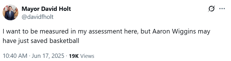 期間,俄克拉荷馬城市長(zhǎng)David Holt發(fā)推,描述了當(dāng)下看球的心情: