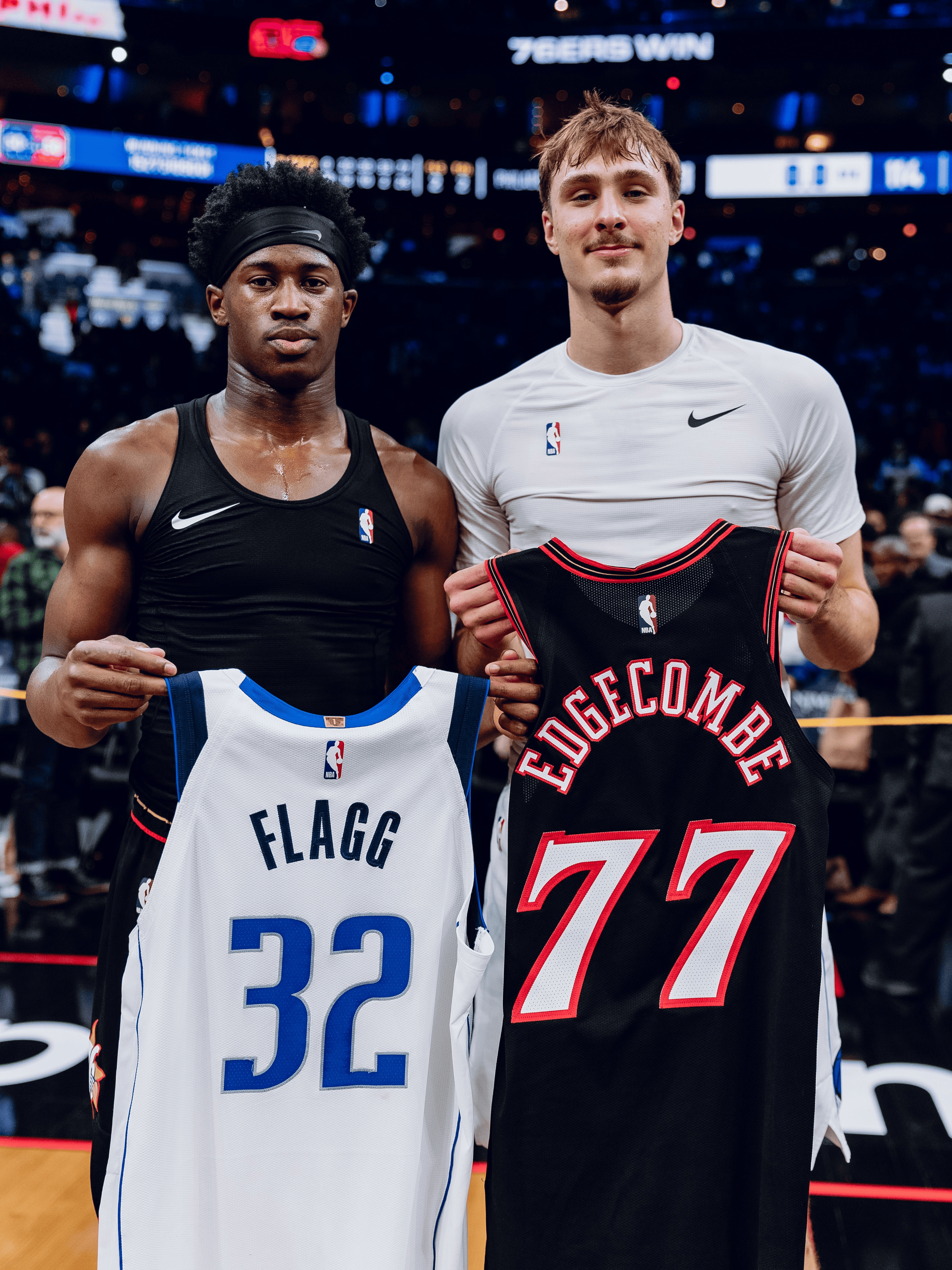 76人官方賽后曬照:25年新秀埃奇庫姆和弗拉格賽后互換球衣。