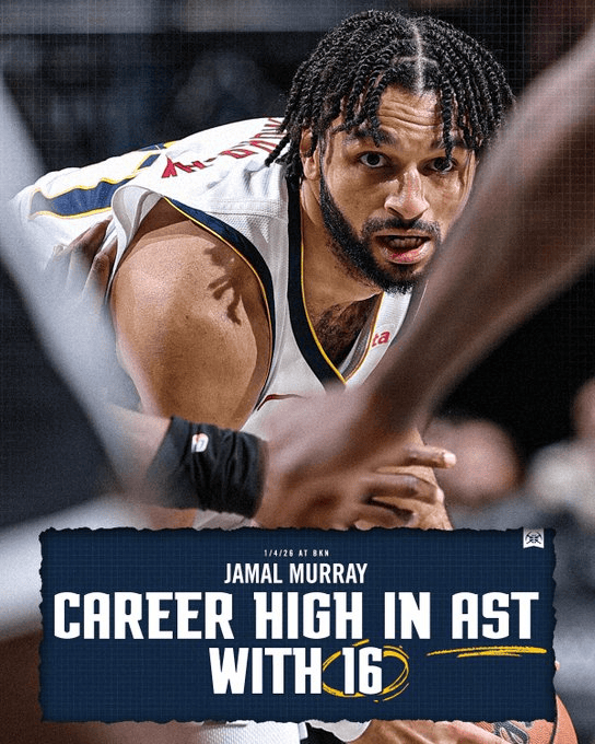 掘金官方發(fā)文:“默里本場的16助攻創(chuàng)下了個(gè)人生涯和賽季新高。”