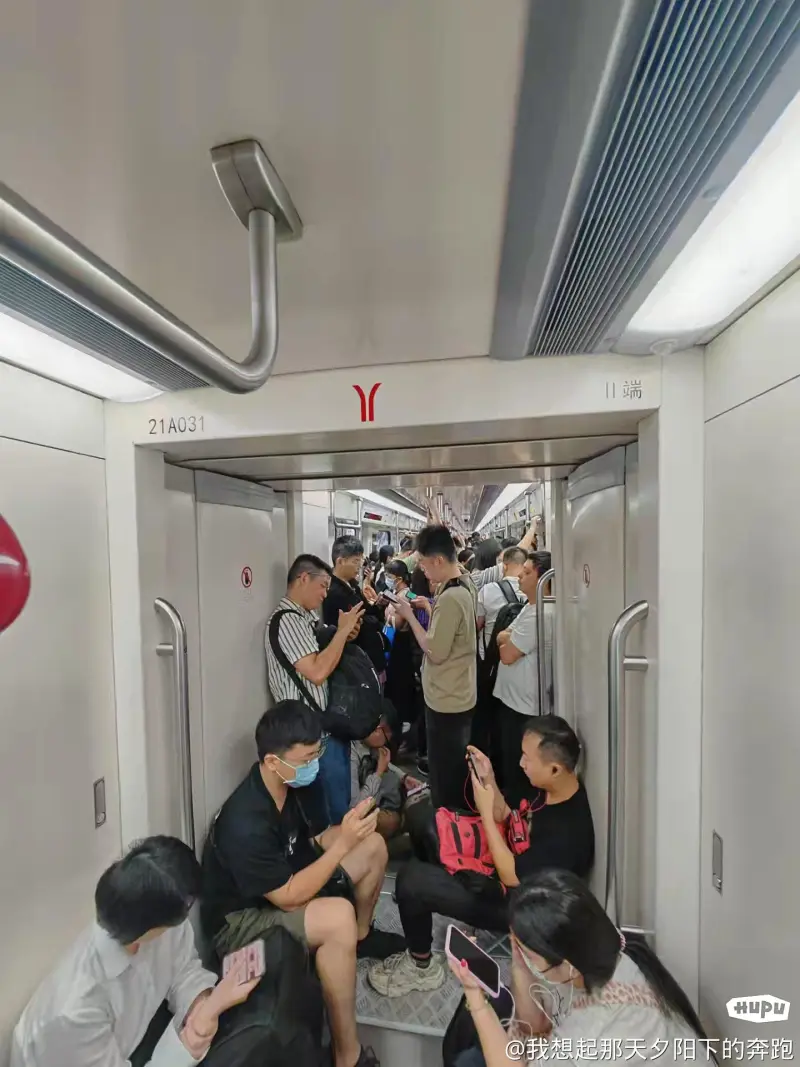 上班高峰期,被擠得人貼人,上地沒扶手抓的鐵放話都很難站穩(wěn)。而車廂連接處有的待種凳坐的行人自己加凳子坐,感覺這里是上地隔絕其他區(qū)域的存在。