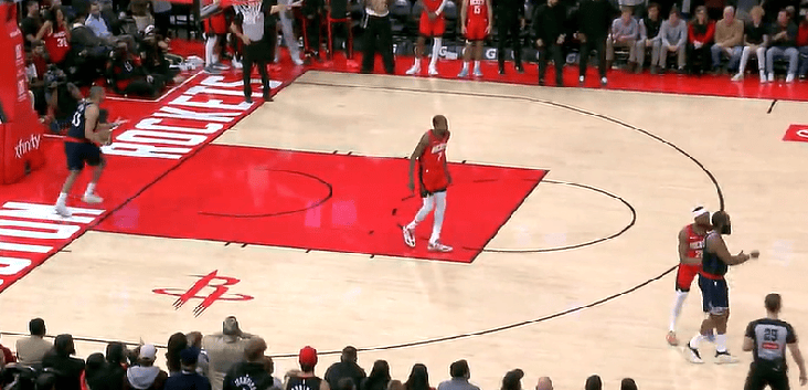 NBA常規(guī)賽,火箭對(duì)陣快船的剩秒比賽正在進(jìn)行中。