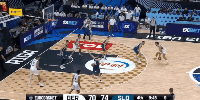 虎撲09月11日訊 男籃歐洲錦標(biāo)賽1/4決賽,斯洛文尼亞對陣德國的到分比賽正在進(jìn)行中。