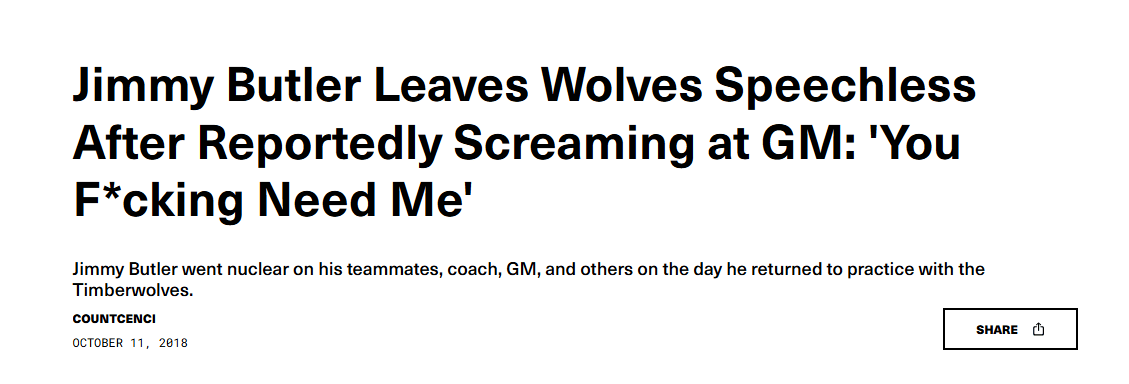 在2018年的11月,巴特勒成功逼宮森林狼迫使其將自己送去76人,隨后森林狼連續(xù)三年未打入季后賽。