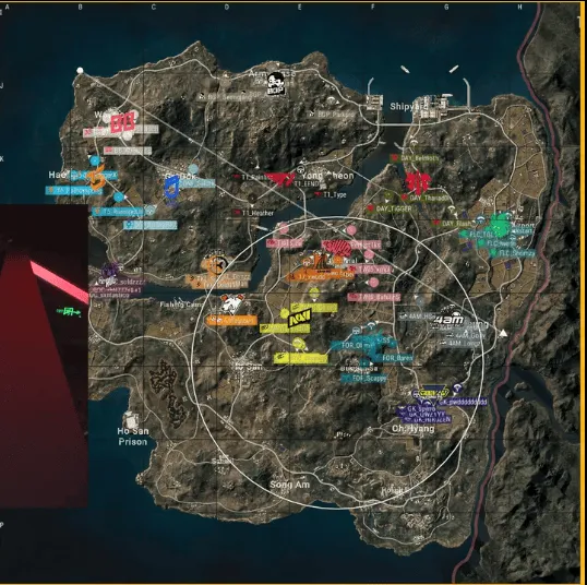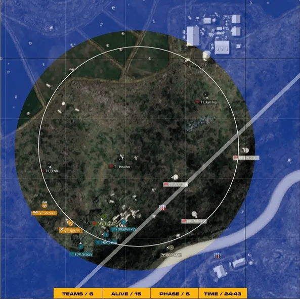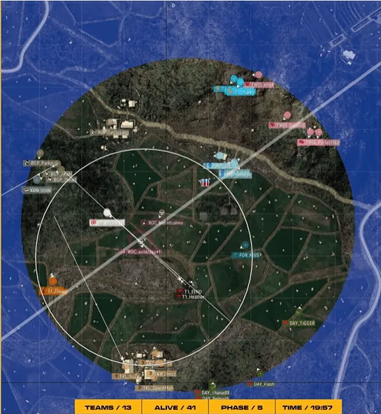 階段6,圈型刷在養(yǎng)雞場南部山坡附近,多隊在戰(zhàn)壕混戰(zhàn),4AM先將GK淘汰,隨后DAY趕來勸架將4AM淘汰出局,最終DAY也被淘汰。