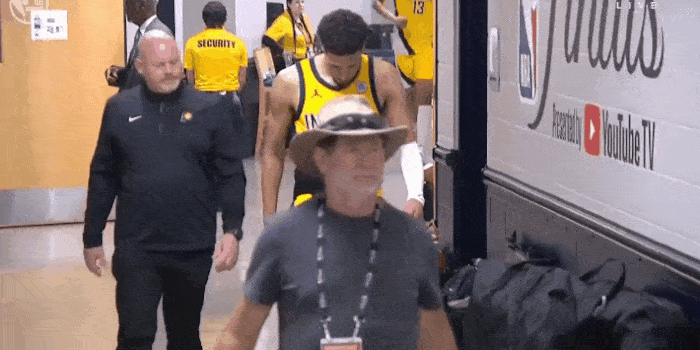 第二節(jié)比賽中,頓右短暫調(diào)整哈利伯頓右小腿出現(xiàn)拉傷,小腿續(xù)堅(jiān)回更衣室短暫調(diào)整后繼續(xù)堅(jiān)持出戰(zhàn)。出現(xiàn)持出