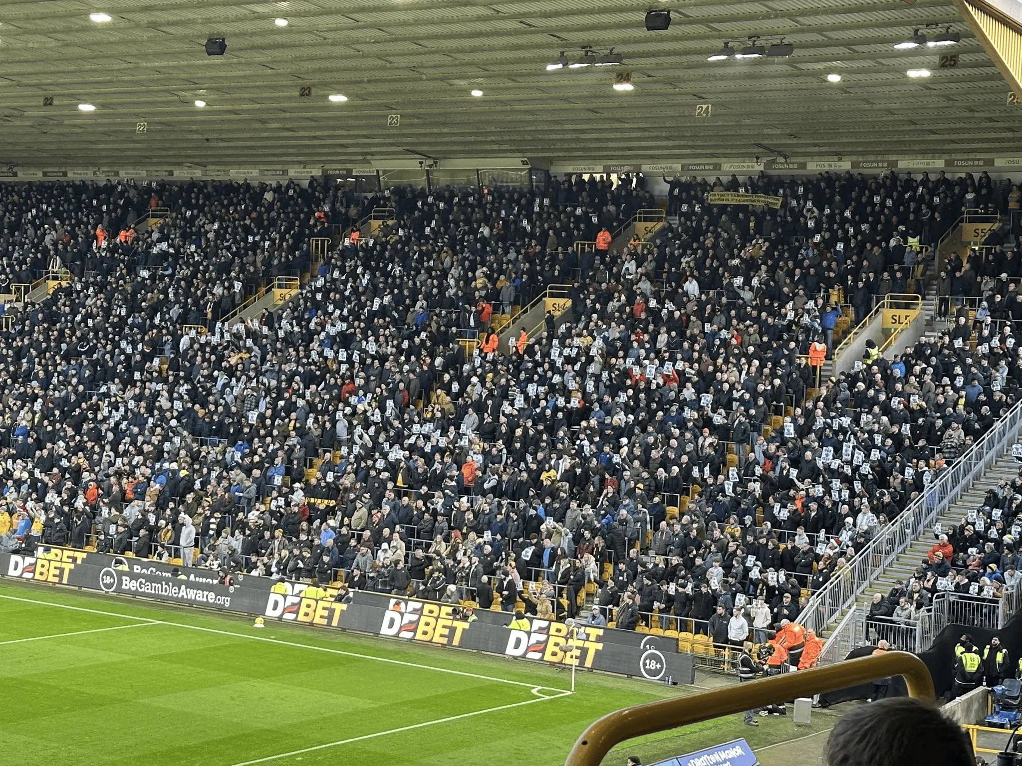 這次“舉牌”行動(dòng)由 Old Gold Pack 聯(lián)合 Wolves 1877 Trust 等多個(gè)球迷團(tuán)體推動(dòng),組織方還提供可下載打印的模板,并在比賽日于球場(chǎng)周邊分發(fā)少量紙牌,力求形成全場(chǎng)統(tǒng)一畫面。