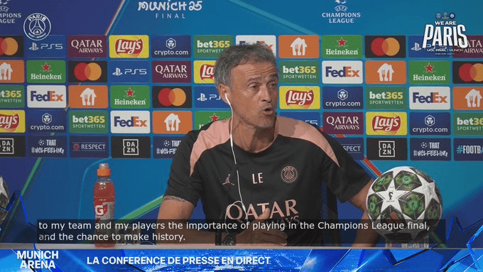巴黎圣日耳曼主教練路易斯-恩里克出席歐冠決賽賽前發(fā)布會。