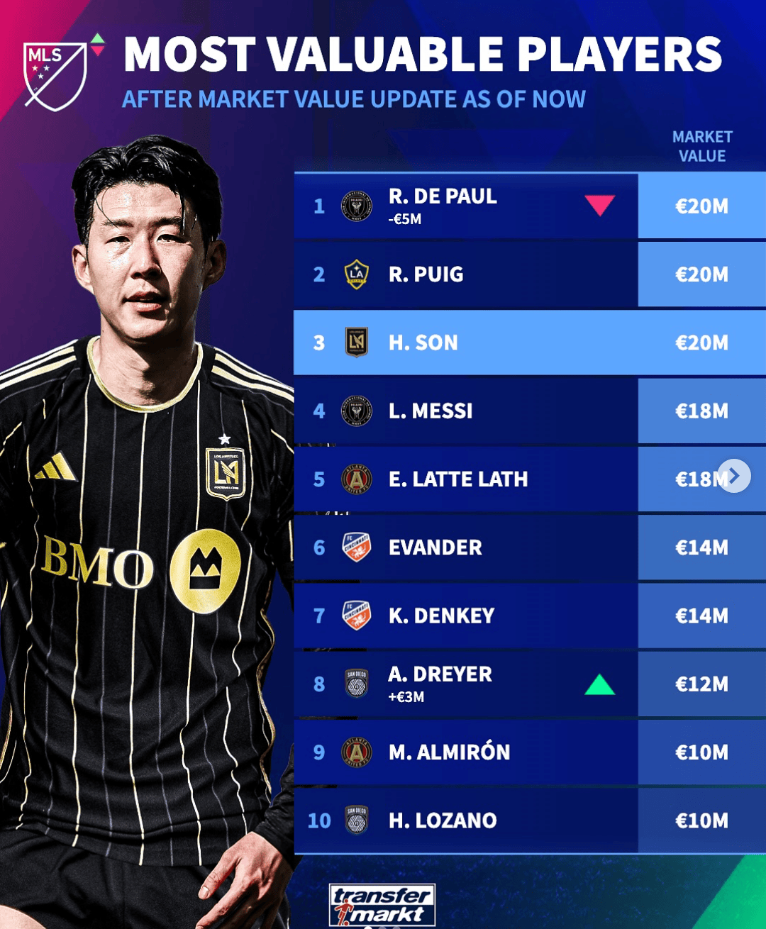 3. 孫興慜(洛杉磯FC):2000萬歐
