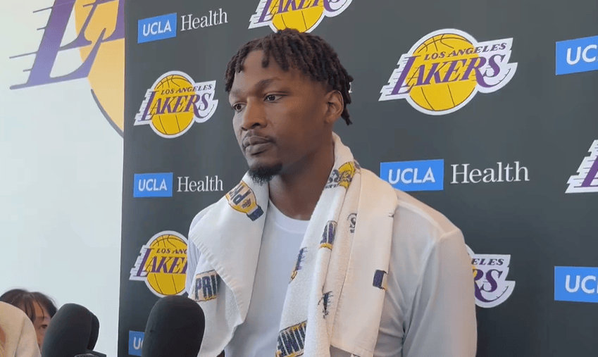 虎撲04月22日訊 今日,在球隊(duì)訓(xùn)練后湖人球員多里安-芬尼-史密斯接受了記者采訪。讓摸