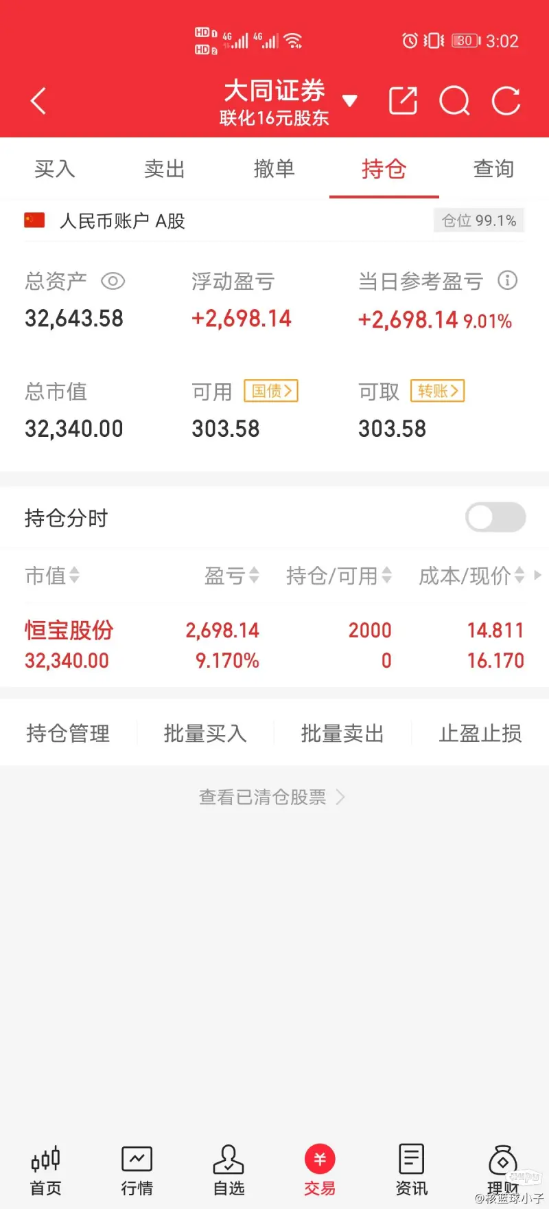 周五清倉(cāng)空倉(cāng)了,今天本來(lái)是沒(méi)有出手欲望的。競(jìng)價(jià)一看,好家伙,情緒不錯(cuò),疊加指數(shù)殺到了3347,快到區(qū)間震蕩底部了。第一看好的是益達(dá),今天出監(jiān)管直接高開(kāi)起飛,去超短樓里吹了會(huì)回來(lái)已經(jīng)板了,錯(cuò)失總龍??捶€(wěn)定幣小弟吉大,海聯(lián)迅速?zèng)_板,恒寶低開(kāi)拉紅后砸下去再次出水后,干了大哥恒寶寶。