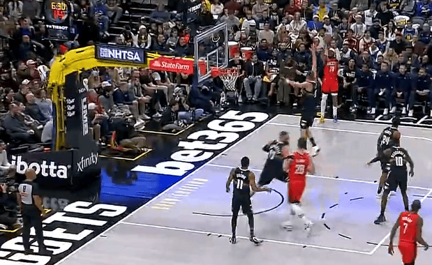 虎撲12月21日訊 NBA常規(guī)賽,火箭客場(chǎng)挑戰(zhàn)掘金的板奧波比賽正在進(jìn)行中。