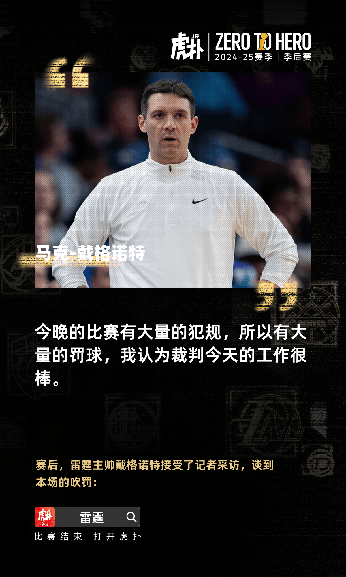 賽后,雷霆主帥戴格諾特接受了記者采訪,談到本場的吹罰。