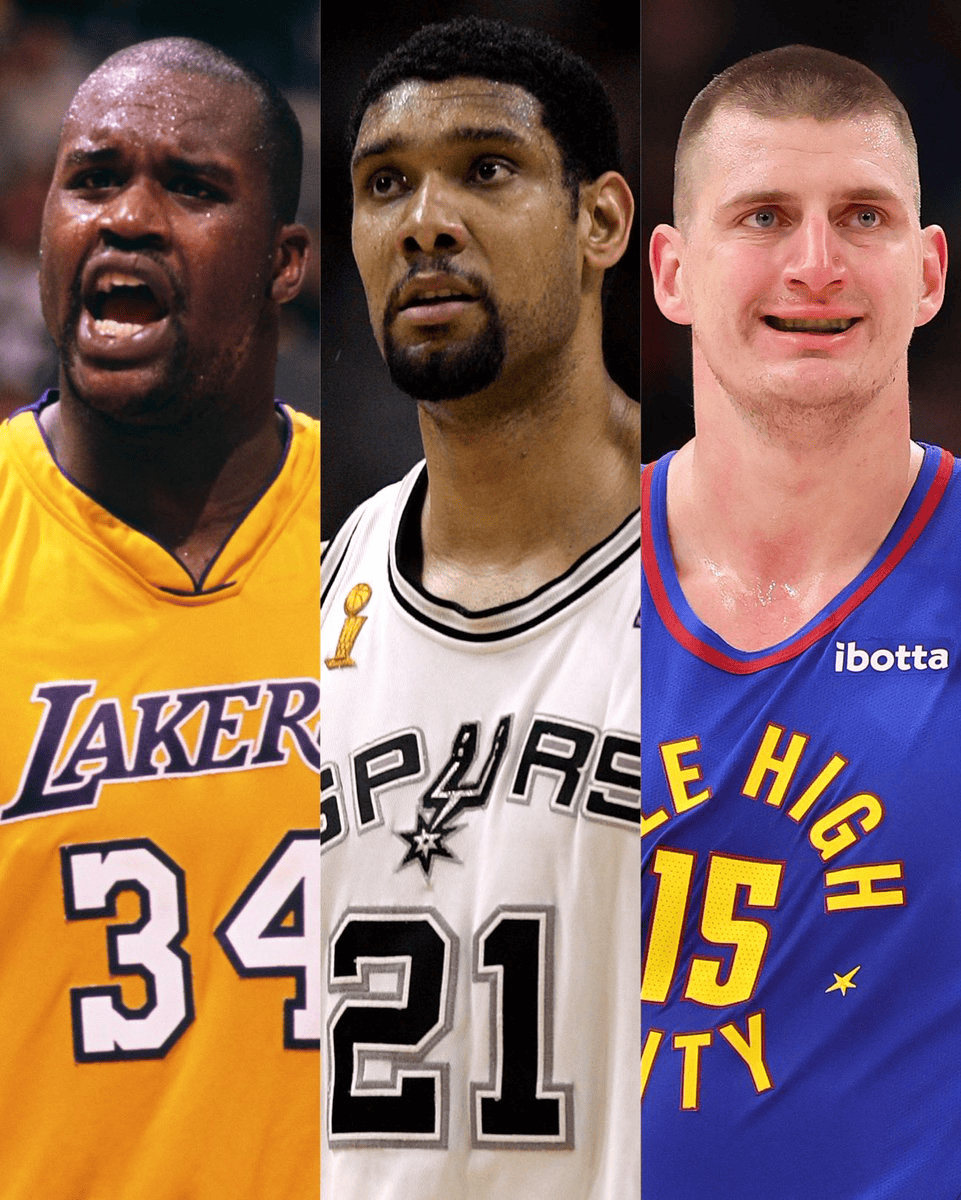 圖中的員排三名球員是:沙奎爾-奧尼爾、蒂姆-鄧肯和尼古拉-約基奇。板歷別