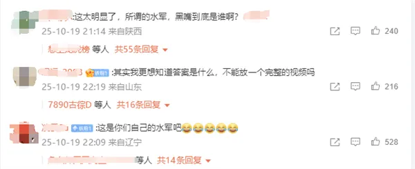 另有網(wǎng)友戲謔:這是你們自己的水軍吧!
