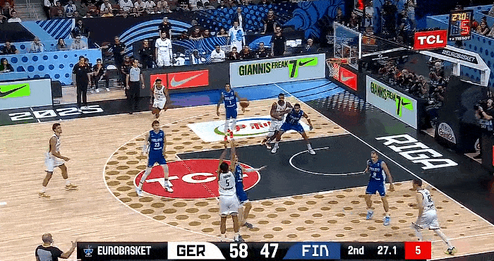 虎撲09月12日訊 男籃歐錦賽半決賽,德國(guó)對(duì)陣芬蘭的板火半場(chǎng)比賽正在進(jìn)行中。
