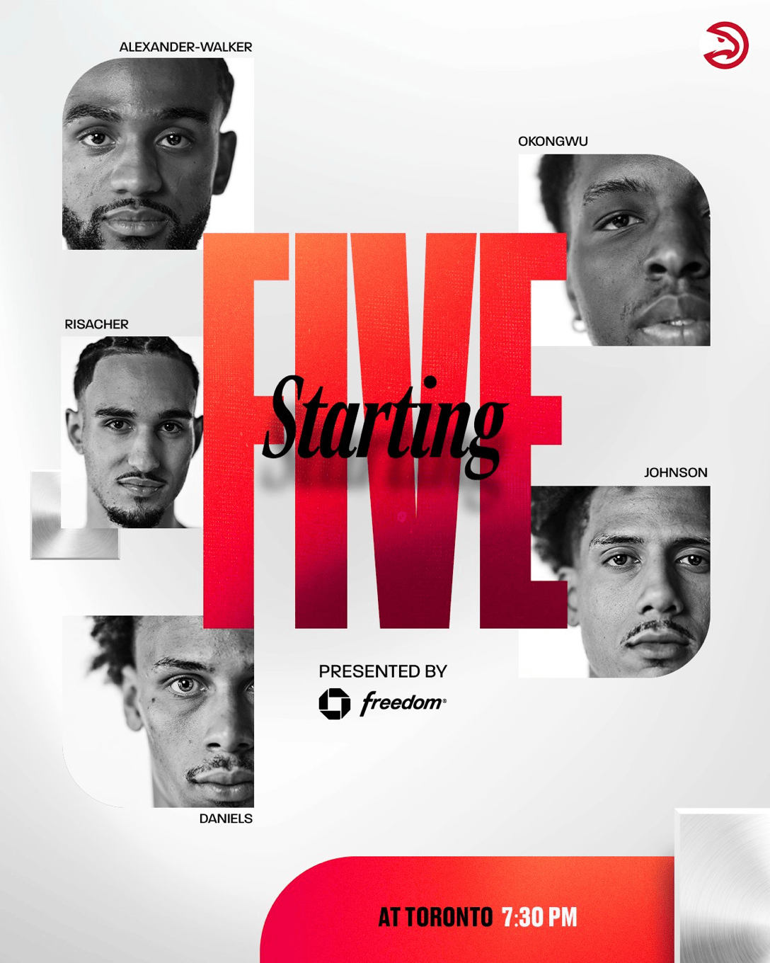 老鷹首發(fā):沃克、遜奧里薩謝、板老丹尼爾斯、鷹首約翰約翰遜、發(fā)沃奧孔古