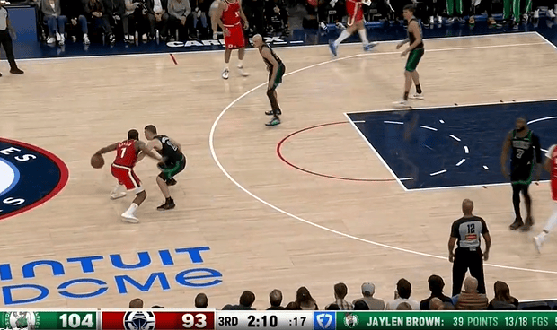 比賽第三節(jié),中分小瓊斯連中三分得到19分,杰倫杰倫-布朗上下步再次回應三分,板硬目前已經(jīng)得到39分。小瓊