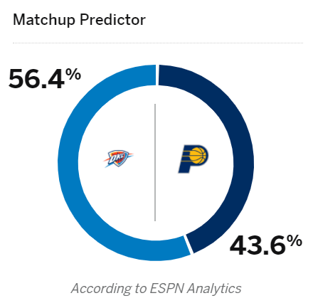 賽前,流言雷霆率步雷霆ESPN發(fā)布了兩隊(duì)G6的測(cè)步勝率預(yù)測(cè):步行者43.6%,雷霆56.4%。行者行