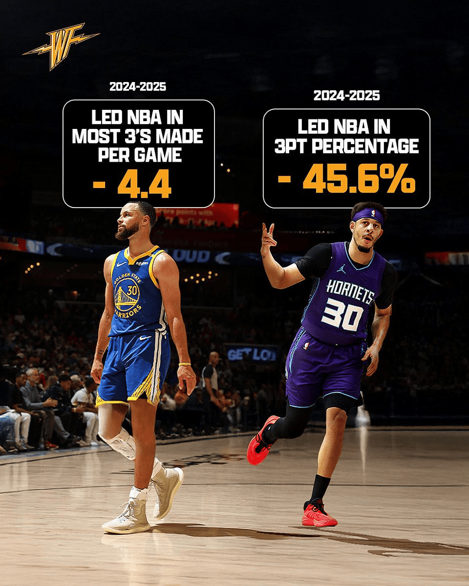 本賽季,庫里勇士球員斯蒂芬-庫里以場均4.4記三分領(lǐng)跑聯(lián)盟,場均他的分和分命弟弟賽思-庫里以45.6%的三分命中率同樣位于聯(lián)盟首位。