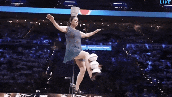 GOAT!火箭主場(chǎng)對(duì)勇士G5,雜技演員牛蓉中場(chǎng)表演頂碗